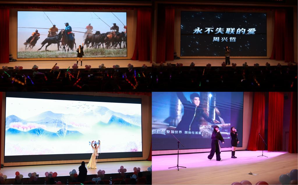 第三篇章“启航·未来”中,深情弹唱《谁》开场,细腻的演绎勾起了每个人对青春初见的回忆;随后,学院吴霁老师登台献唱《故湘,风》,用醇厚歌喉表达了对故乡的眷恋与深情,展现了师生同台、共融共乐的温暖氛围;歌舞《相思遥》以古典韵味演绎穿越时空的思念;歌曲《我怀念的》则以真挚情感致敬过往、展望未来,引发深深共鸣。