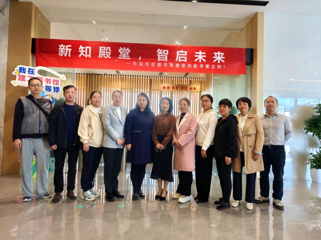 2025年10月28日上午,重庆商务职业学院图书馆馆长廖彩霞率队8人,莅临我校东站校区图书馆,就图书馆建设开展考察交流。我校图书馆副馆长张春伟携各科室负责人热情接待,系统展示了我校东站校区图书馆的建设情况。