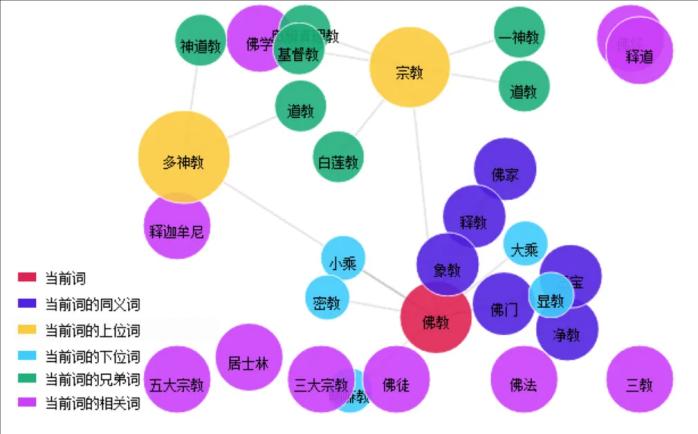 (1)词谱图:可以根据查询词展示该词语的上位词、下位词、同义词、兄弟词、相关词。