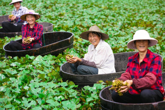 采菱:每到处暑时节,浮盆采菱是江南水乡最动人的景象之一。菱角颜色鲜艳,漂浮在水面上,乡间妇女则乘着菱桶或兰挠,边歌边采,享受这美好的时光。
