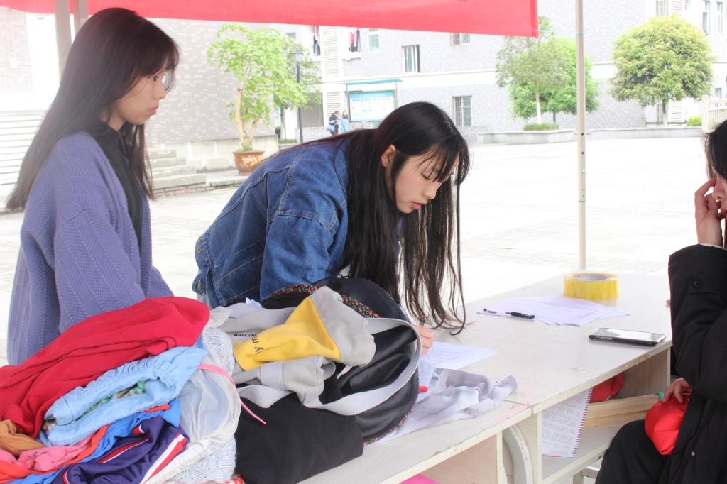 在活动举办之前,志愿者们通过团学公众号对回收旧衣活动进行了线上宣传,同时,志愿者们也通过在校派发传单的形式得到了更多同学们的支持。志愿者们将同学们提前就整理好的旧衣打包收集进行折叠、分类、计数、装袋。