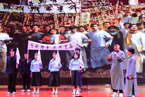 会后,团学干部们为大家带来了一堂别开生面的主题团课,通过讲、诵、唱、演等鲜活的舞台形式,表达了青春洋溢的爱国之情,更传递了青年一代勇于担当、敢于奋斗的精神。