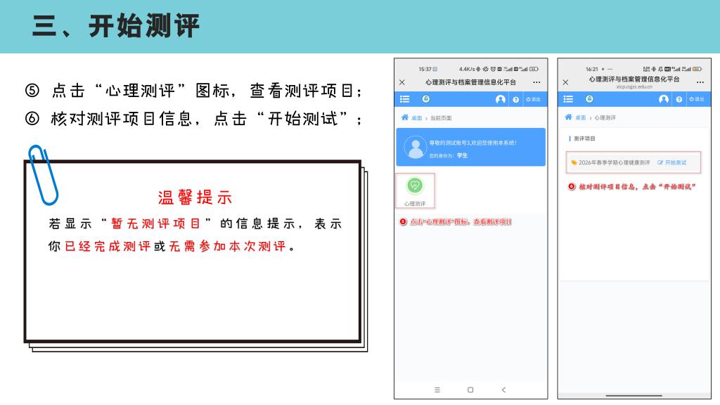 2026年春季学期心理健康测评操作流程