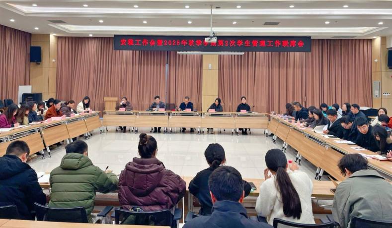 12月22日下午,学校在学生活动中心学术报告厅召开2025年秋季学期学生安全稳定工作会议暨第二次学生管理工作联席会。相关职能部门负责人,各二级学院党总支书记(或副书记)、学工办主任和全体专兼职辅导员(班主任)参加会议。会议由党委副书记郭光亮主持。